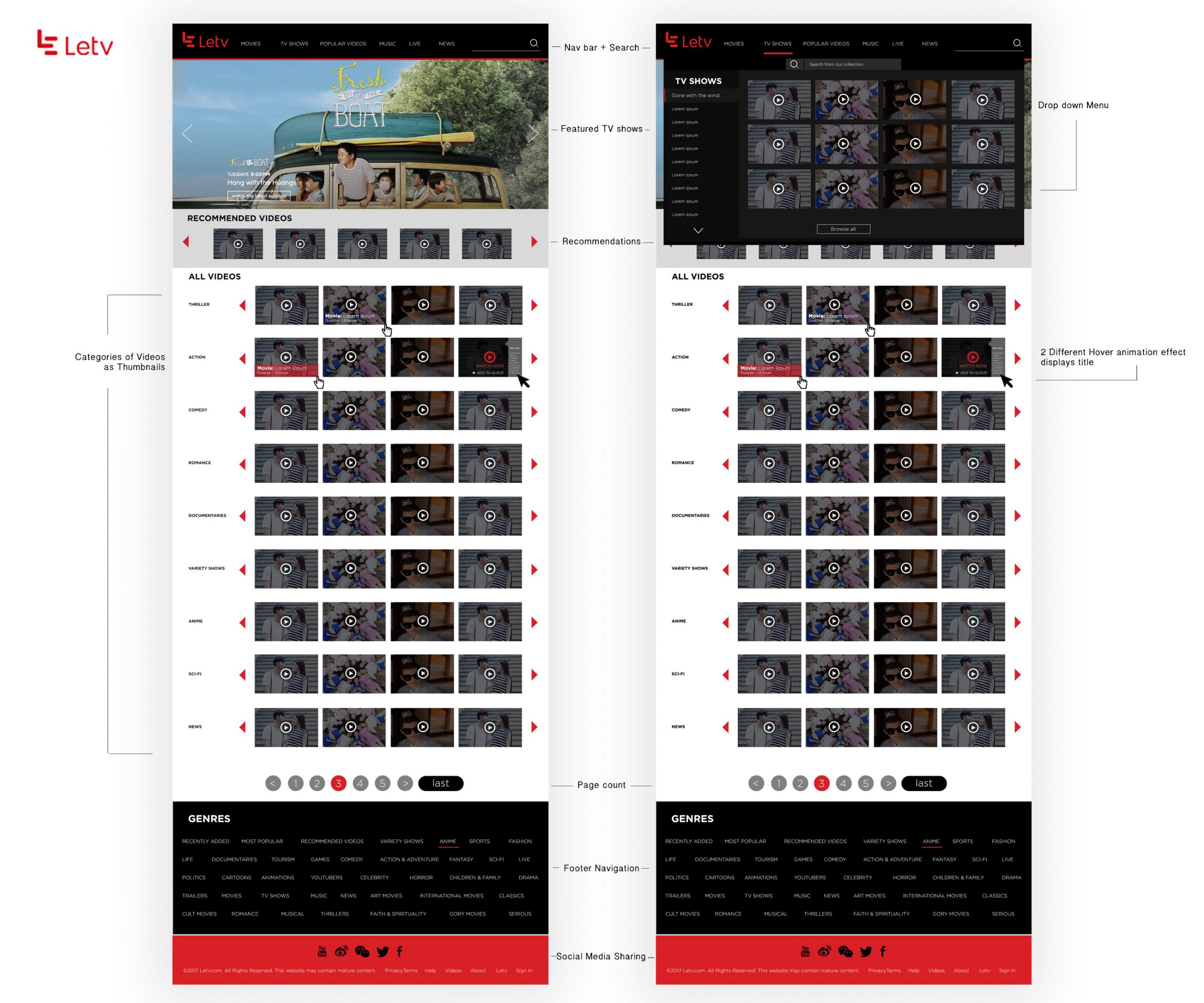 Designing the design system for Letv North America was a challenge as we wanted to recreate it from scratch for the US and Canada markets, a completely new and different audience segmentation than the Chinese market.